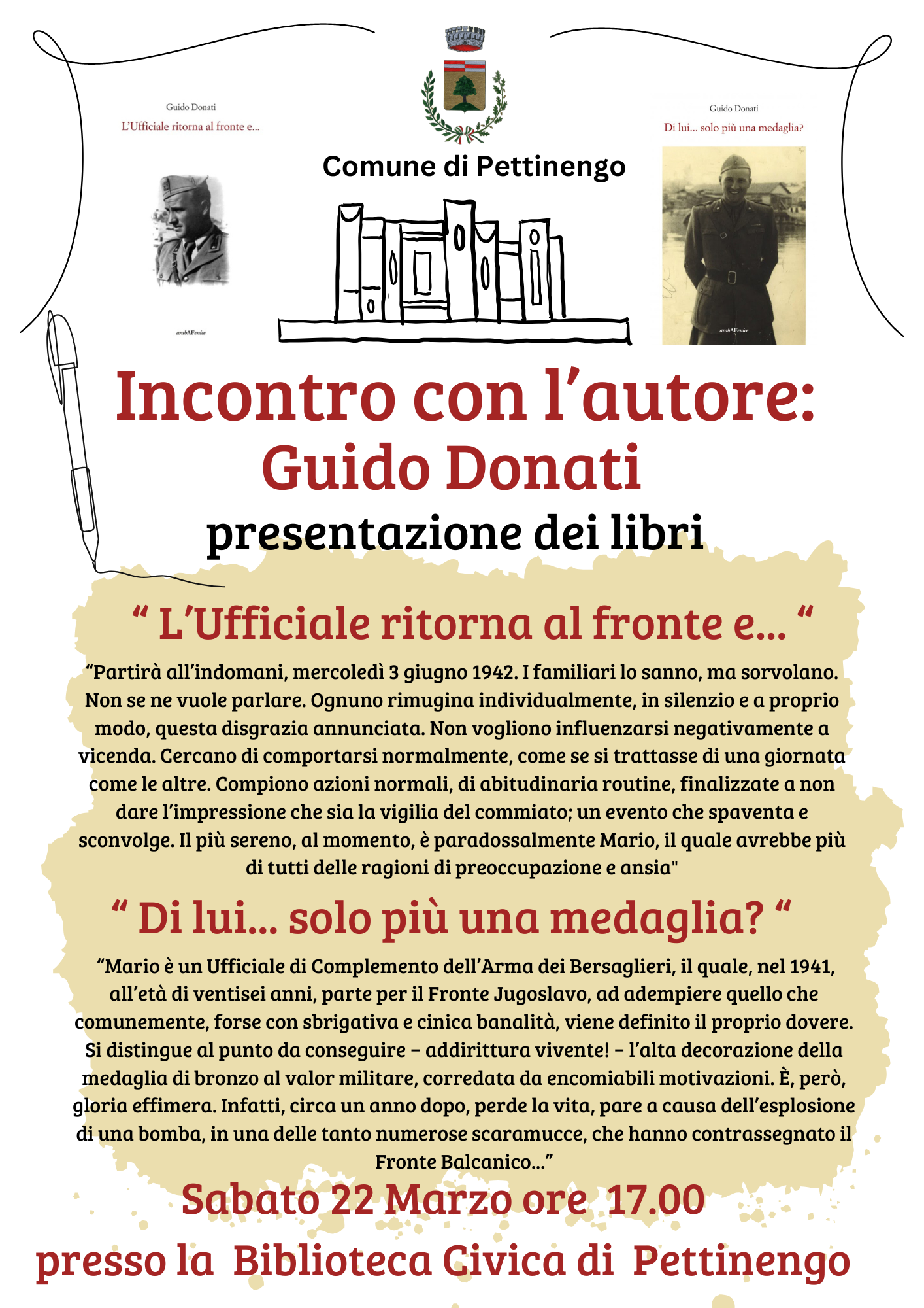Presentazione libri "L'ufficiale ritorna al fronte e..." - "Di lui... solo più una medaglia?"