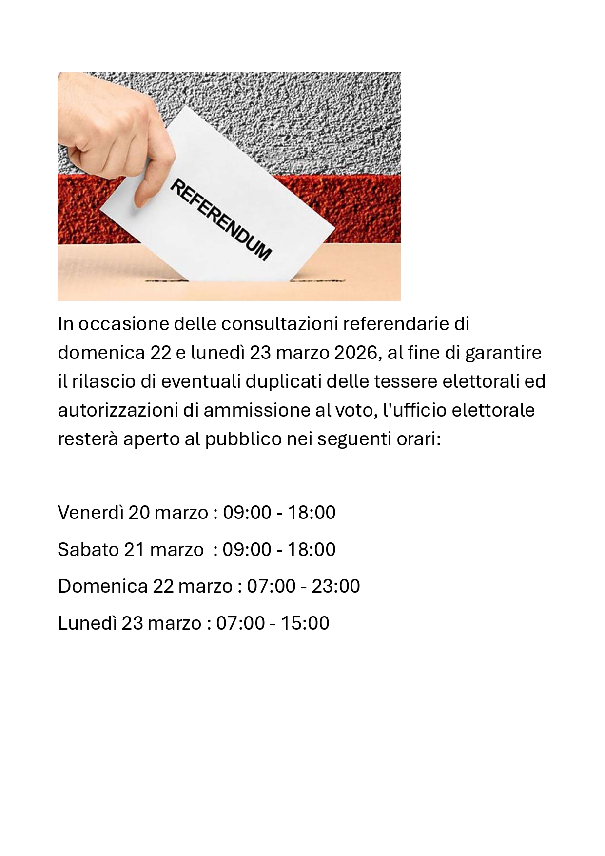 Orario apertura ufficio elettorale